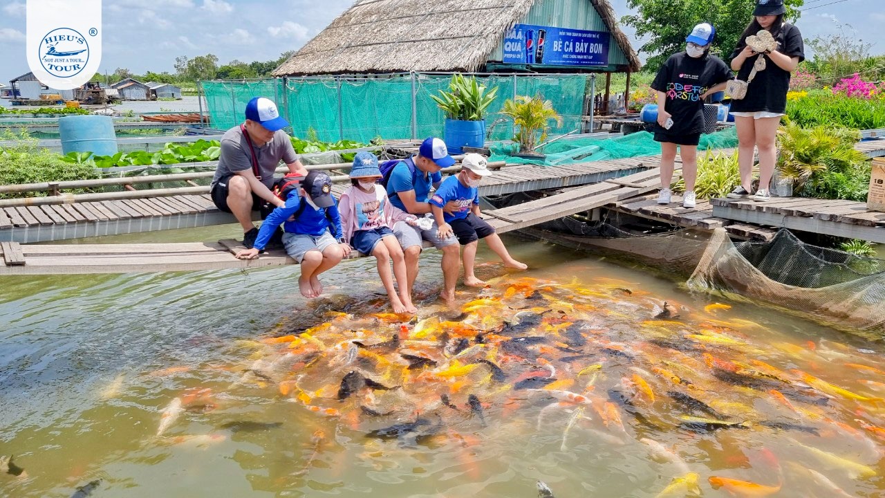 Quý khách tham quan Làng cá bè, cùng người dân cho cá ăn và tìm hiểu về nghề nuôi cá bè trên sông, hiểu hơn về cuộc sống mưu sinh gắn bó với đất với nước của người miền Tây, cũng như quý khách có dịp mua cá thịt hoặc chả cá thác lác về làm quà cho người thân (tự túc).