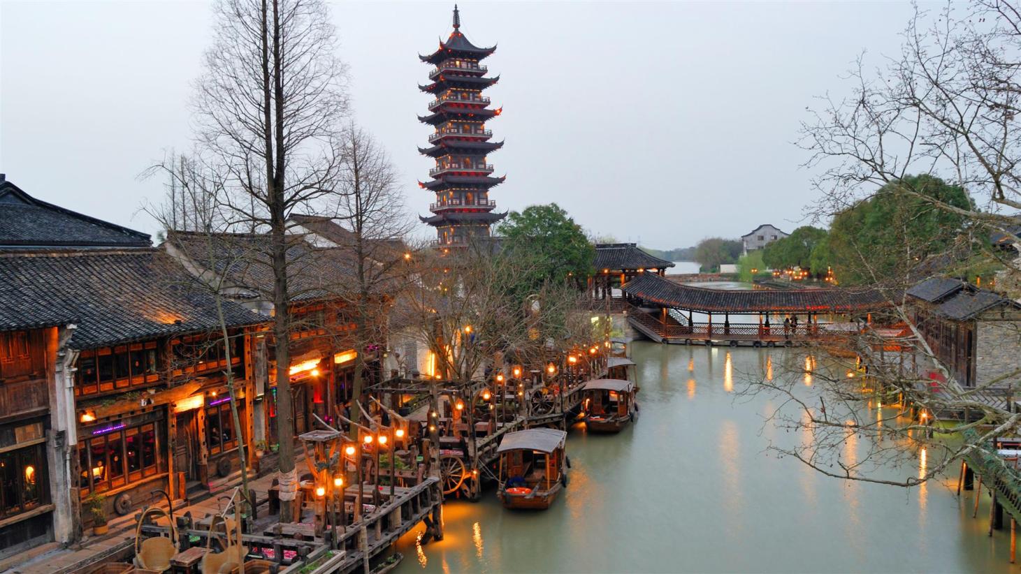 Quý khách đi Ô trấn (Phía Tây) - Ô trấn là một trấn cổ sông nước lớn nhất Trung Quốc với hơn 1300 năm lịch sử thể hiện qua những cây cầu đá cổ, những con đường lát đá và những công trình gỗ chạm khắc tinh tế. Gần như vẫn giữ được kiến trúc cùng tập tục sinh sống hơn 1.000 năm qua nên Ô Trấn trở thành điểm du lịch mà ai cũng muốn đến một lần.