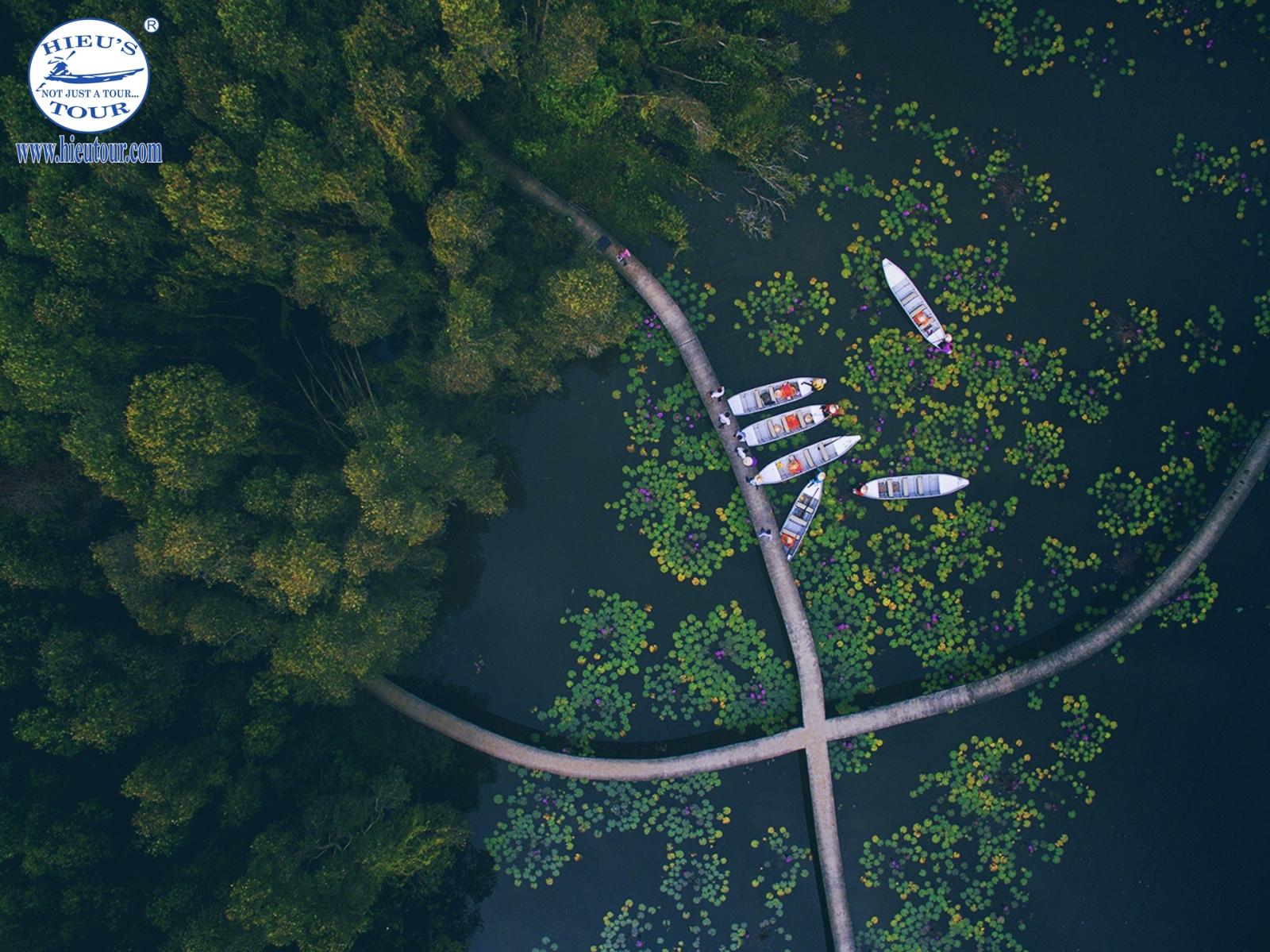 Known as an untouched area with a dense network of rivers, canals, and swamps used for the strategic base during the Vietnam War from 1960 to 1975, Xeo Quyt ecological site in Dong Thap is an attractive historical monument and eco-tourism site of Mekong Delta. There you can visit several historical landscapes and much magnificent natural beauty of layers of cool green melaleuca forest as well as explore narrow sampans through several untouched small canals. This is an extremely magnificent experience that you should never miss.