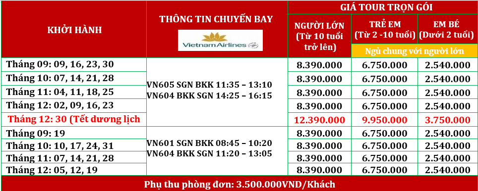 BANGKOK – TP. HỒ CHÍ MINH (Ăn sáng) |
