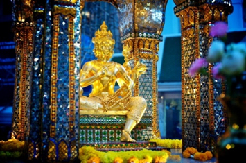 Viếng đền Erawan – Tượng Phật bốn mặt đặt tại đền Erawan, ngay trung tâm thủ đô Thái Lan. Được người dân Thái cũng như khách du lịch nói chung rất tôn kính bất kỳ ai đến đây đều dân hoa vàng kết vòng mang theo niềm tin để lời nguyện cầu.