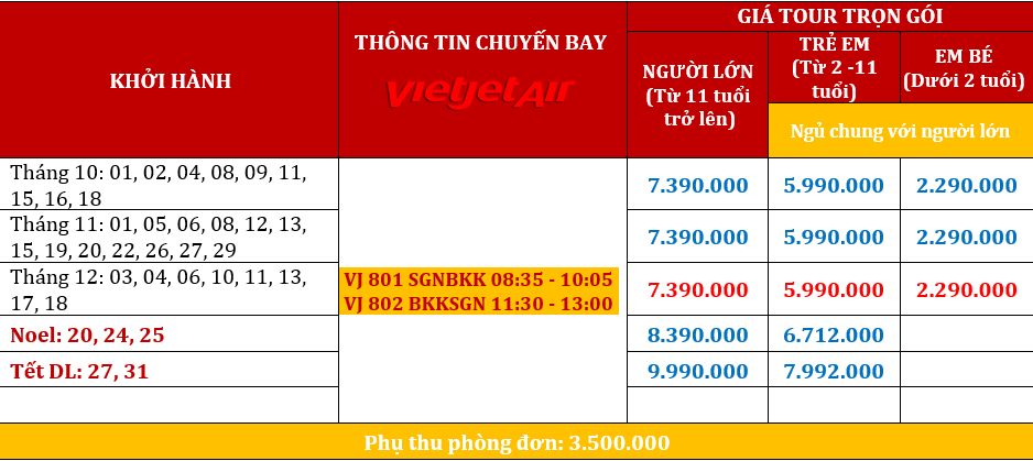 Phòng đơn : 3,500,000 vnđ/tour nếu khách có nhu cầu.