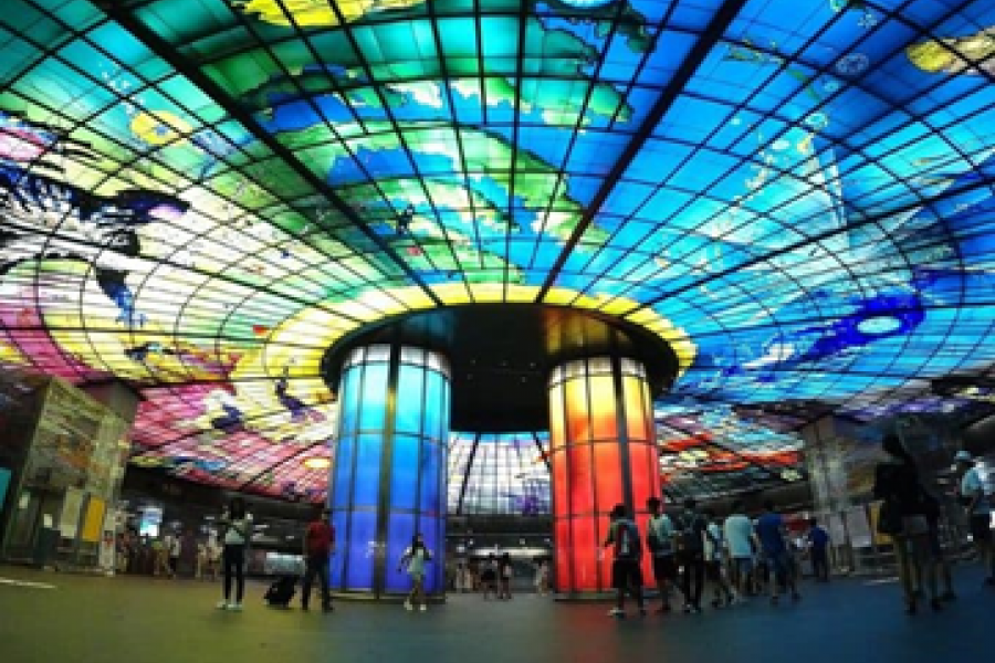 Trạm tàu điện Formosa Boulevard –. Nhà ga tàu điện ngầm Formosa Boulevard tại thành phố Cao Hùng không chỉ là một điểm trung chuyển giao thông quan trọng mà còn nổi tiếng khắp thế giới nhờ công trình nghệ thuật độc đáo được tạo nên từ 4.500 tấm kính màu rực rỡ, tạo thành mái vòm kính lớn nhất thế giới. Với kiến trúc ấn tượng, hiệu ứng ánh sáng tuyệt đẹp và không gian như một tác phẩm nghệ thuật sống động, nhà ga này đã trở thành điểm đến yêu thích của du khách khi ghé thăm Cao Hùng.